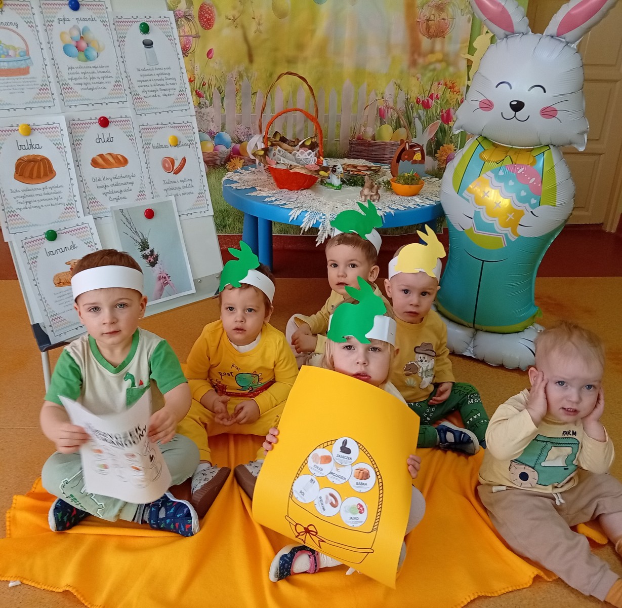 W grupie Misiów panowała radosna, wiosenna atmosfera związana z nadchodzącymi Świętami Wielkanocnymi. Dzieci miały okazję poznać wybrane tradycje wielkanocne oraz symbolikę świątecznego koszyczka i kolorowych pisanek. Podczas rozmów maluszki dowiedziały się również, na czym polega tradycja lanego poniedziałku, co wzbudziło wiele uśmiechów i zainteresowania.