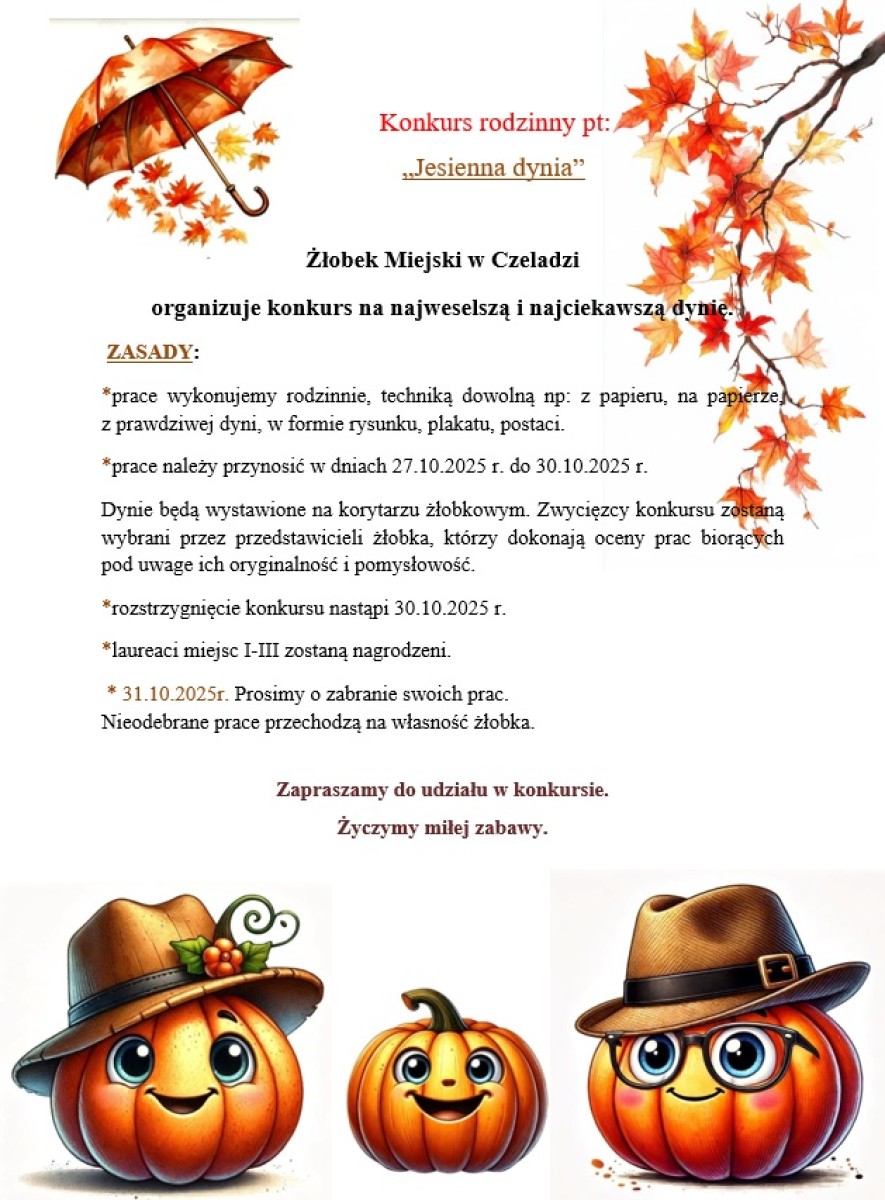 organizuje konkurs na najweselszą i najciekawszą dynię.