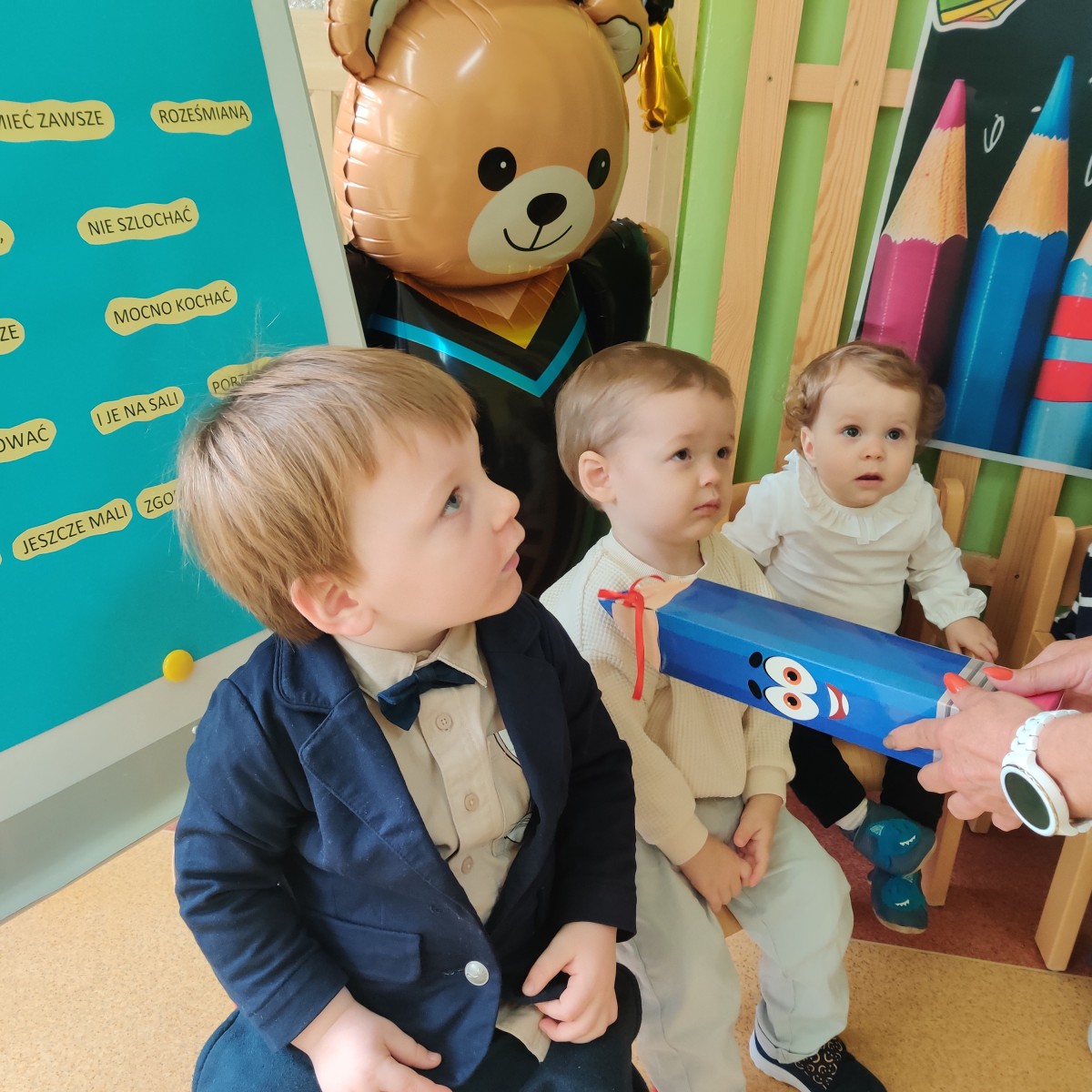 Tego dnia dzieci wyglądały wyjątkowo elegancko w swoich odświętnych strojach. Z pomocą starszych kolegów i koleżanek maluszki z dumą zaprezentowały piosenki, których nauczyły się w żłobku. Następnie złożyły uroczystą przysięgę, odczytaną przez ciocię, obiecując m.in., że będą przychodzić do żłobka z uśmiechem i zgodnie bawić się z rówieśnikami.